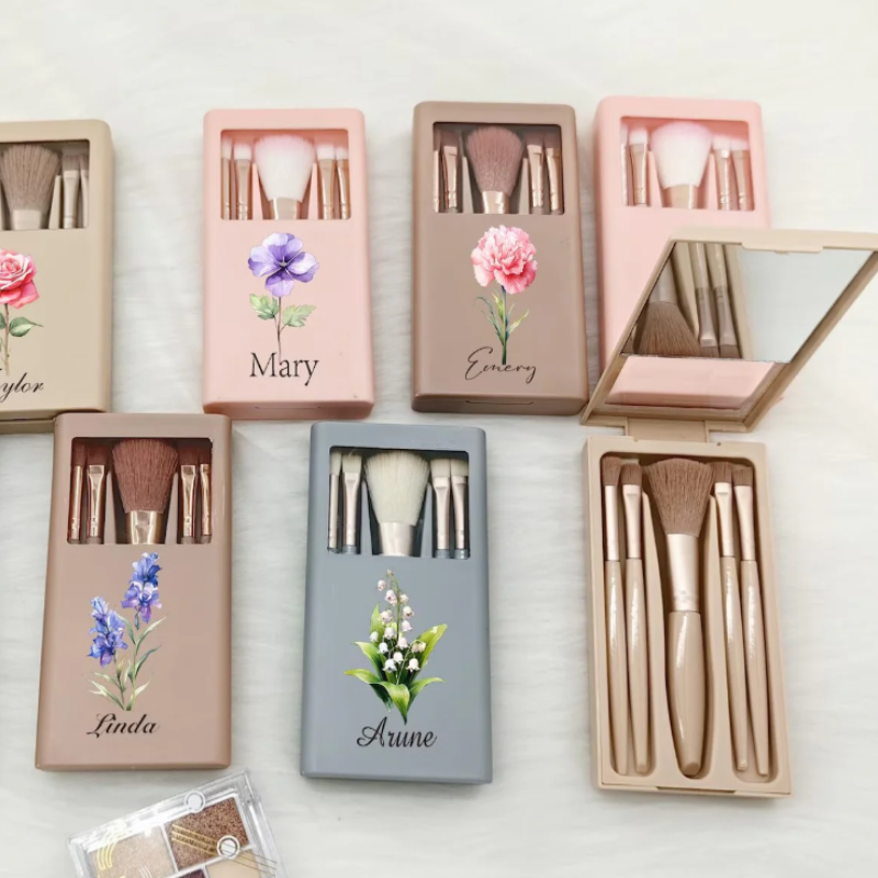 Upgrade beauty storage with our Personalized Makeup Brush Set, beautifully packed in a makeup brush box with a built-in mirror. Designed for elegance and convenience, this cosmetic brush organizer can be customized with a name and birthday month flower, making it a perfect wedding gift, bridesmaid gift, or travel gift for her or mom. Compact yet functional, it keeps brushes clean, organized, and ready anytime.