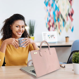 Pink Laptop Protective Case – PU Leather Waterproof Laptop Bag with Handle, Notebook Carrying Case for Work & Travel (39×24 cm)