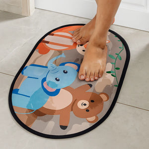 Cartoon Print Oval Mat – Soft, Non-Slip Floor Rug for Kids Room, Bathroom & Bedroom (Random Design- 60×35 cm)