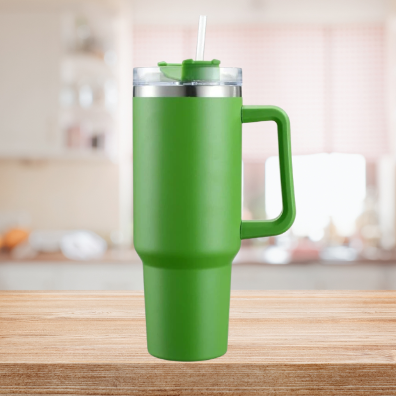 Eco-friendly reusable tumbler reduces single-use plastic bottles.