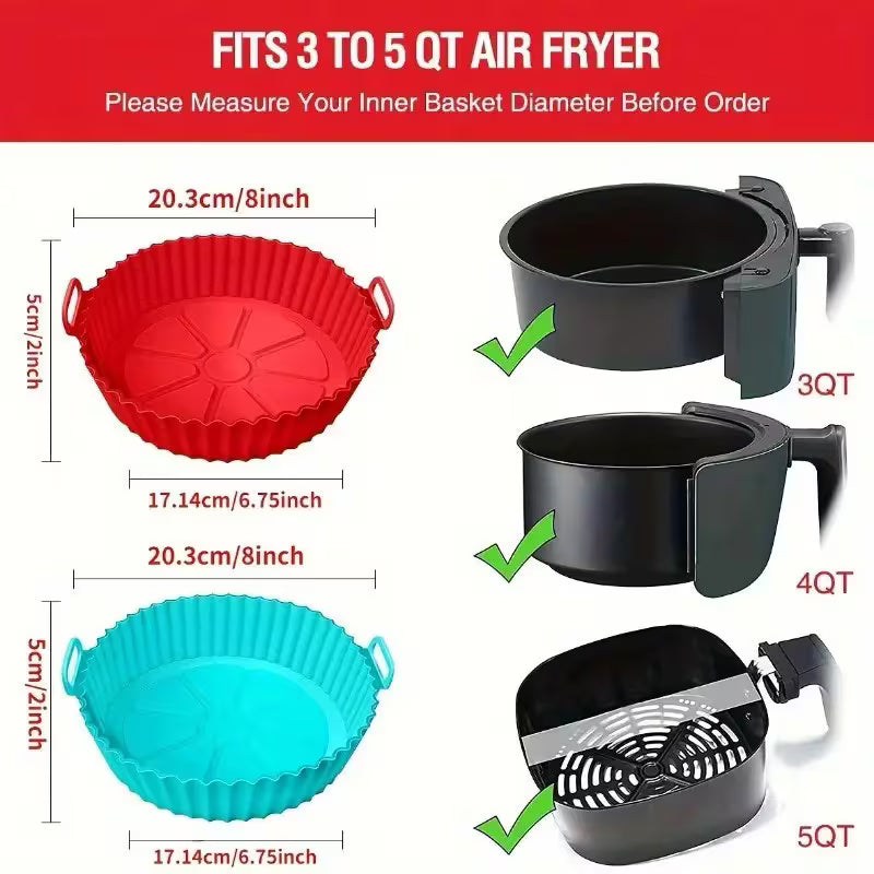 Reusable Air Fryer Silicone Liner – Non-Stick, Easy to Clean, Heat-Resistant Oven & Microwave Safe Basket (Random color-Pack of 1)