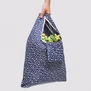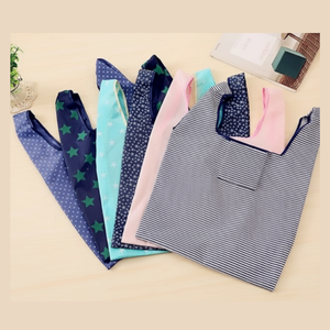 Reusable Foldable Grocery Bags – Eco-Friendly Shopper Tote Bag Folding into Attached Pouch (Random Print-Pack of 1)