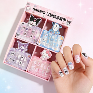 Sanrio Character Press-On Nails for Kids – Cute Cartoon Fake Nails Set (Random Design-Pack of 1 Set)