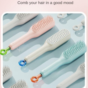 Self-Cleaning Hair Massage Comb – Soft Bristle Anti-Static Brush for Daily Hair Care (Random color-Pack of 1)