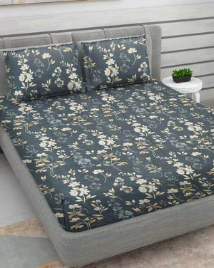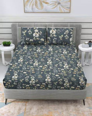 floral bedsheet double bed | soft cotton bedsheet | printed bedsheet with pillow cover | garden print bedsheet | nature-inspired bedding | double bed bedsheet combo | floral design bedsheet online | serene theme bedsheet | machine washable bedsheet set | premium cotton blend bedsheet