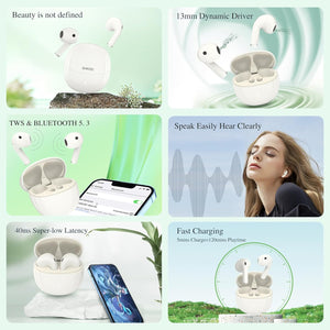 SHKOD AirLits11 True Wireless Earbuds | Bluetooth 5.3 | ENC Noise Reduction | 38 Hours Playtime | Fast Charging | One Touch Control(Moonlight White) [NO COD]