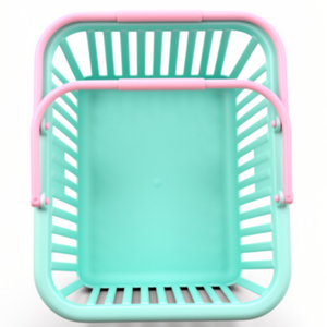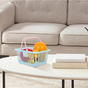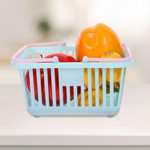 Small Mini Plastic Shopping Basket with Handles – Rectangular Grocery Storage Basket, Open Top Utility Organizer (Pack of 1)