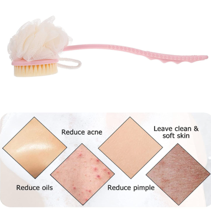 Features: Dual-sided design, long handle for back reach, ergonomic grip, lightweight