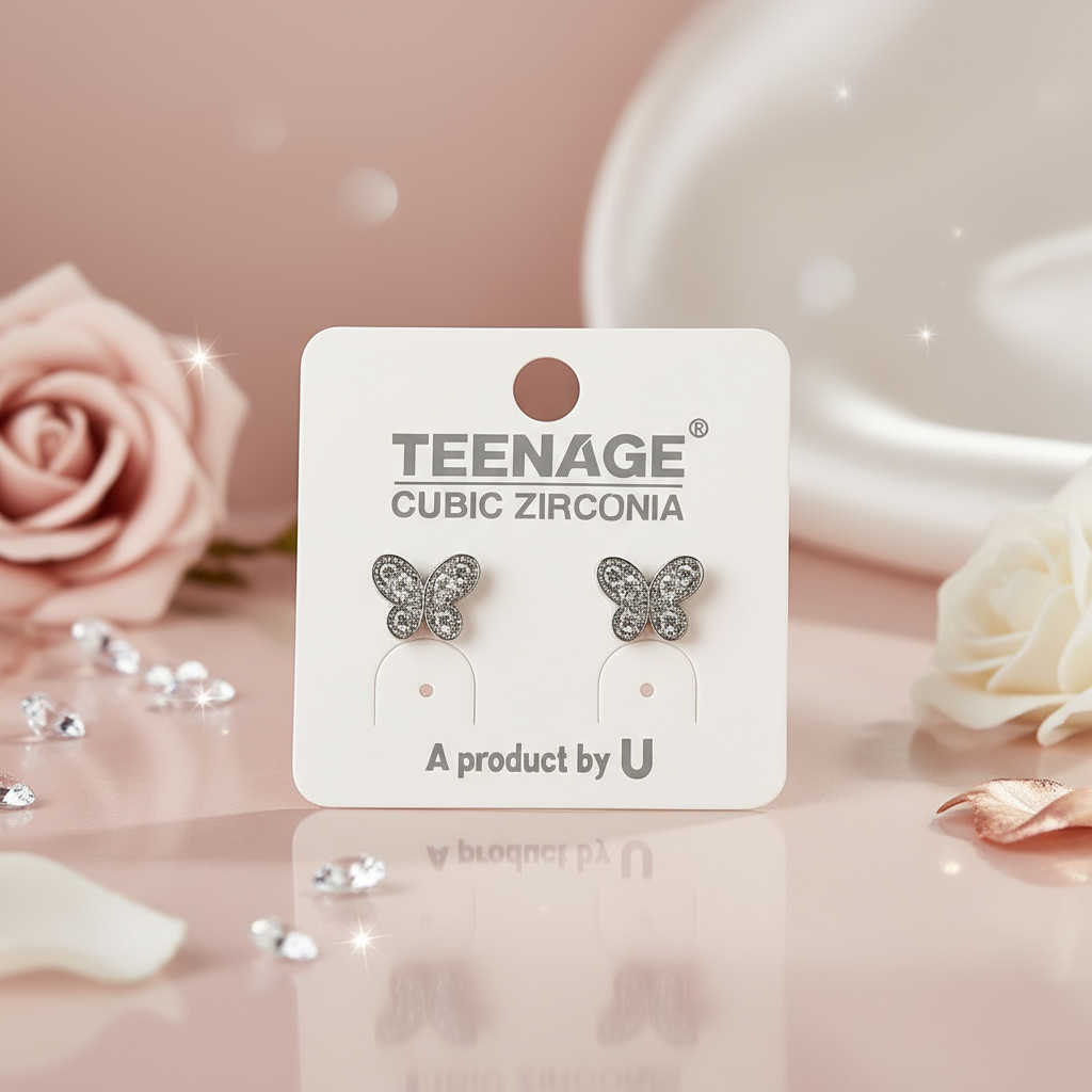 Sparkling Butterfly Stud Earrings with Clear Cubic Zirconia- Minimalist Charm Jewelry (1 Pair)