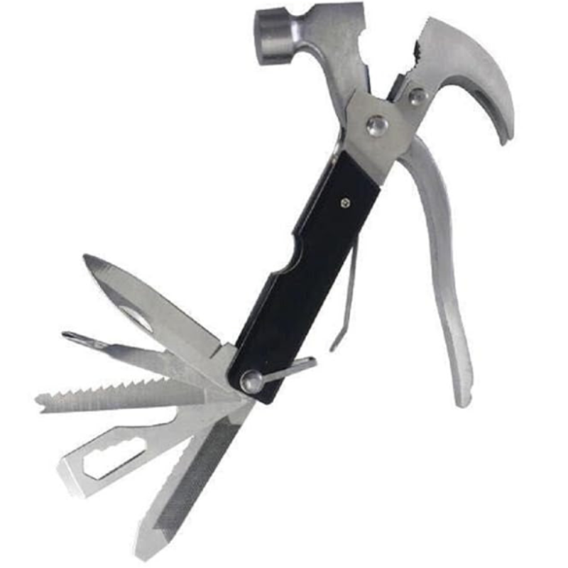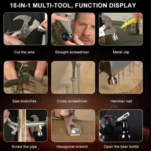 Tools Included: Up to 18 integrated functions such as hammer, pliers, claw, bottle opener, saws, flat and Phillips screwdrivers, wrenches, wire stripper, file, knife, wire cutter