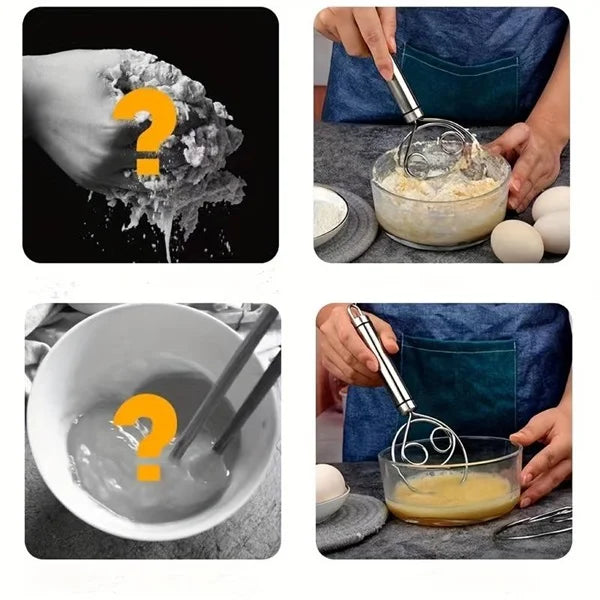 Unleash the Power of Effortless Mixing Effortless Dough Incorporation: The unique coil design of the whisk efficiently incorporates dry ingredients into wet ingredients, ensuring even distribution and a smooth final product. This eliminates the need for multiple mixing spoons or heavy-duty hand mixers. Reduced Mixing Time: The innovative design allows you to mix faster and more efficiently compared to traditional methods. Save time and effort while achieving perfectly mixed dough every time. Versatile Functionality: Whether you're whipping up a batch of cookies, kneading bread dough, or mixing pizza dough, the Stainless Steel Dough Whisk Mixer is a one-stop solution. Its versatility eliminates the need for multiple tools, simplifying your baking process.  Experience the Benefits of Durable Design Food-Grade Stainless Steel: Crafted from high-quality, food-grade stainless steel, the whisk mixer is safe for contact with food and built to resist rust and corrosion. (Double-check material claims) Durable Construction: The sturdy construction ensures long-lasting performance and withstands even the toughest doughs. Easy Cleaning: The smooth stainless steel surface allows for effortless cleaning. Simply rinse under running water or place it in the dishwasher for a hassle-free cleanup. Enhance Your Baking Experience Effortless Handling: The comfortable handle provides a secure grip, allowing you to mix with ease and control, even for extended periods. Reduced Hand Fatigue: The innovative design minimizes hand fatigue by making mixing effortless. This allows you to bake for longer and enjoy the process more. Space-Saving Design: The compact design of the whisk mixer allows for easy storage in your kitchen drawers or utensil holders. A Perfect Fit for Every Baker Baking Enthusiasts: The Stainless Steel Dough Whisk Mixer is an essential tool for anyone who enjoys baking at home, regardless of experience level. Professional Bakers: Upgrade your baking toolkit with this versatile and efficient tool that elevates your baking game. Gifts for Bakers: This high-quality and practical utensil makes a perfect gift for any baking enthusiast.
