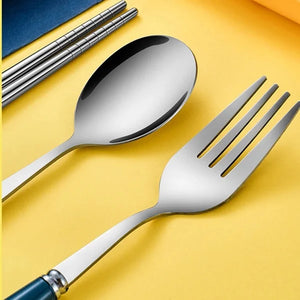 Elevate your dining experience with the Stainless Steel Tableware Set. Crafted from high-quality stainless steel, this durable and stylish set is perfect for a variety of settings, including home kitchens, dining tables, offices, and while traveling. The sleek and modern design adds a touch of elegance to any meal, making it ideal for both everyday use and special occasions.