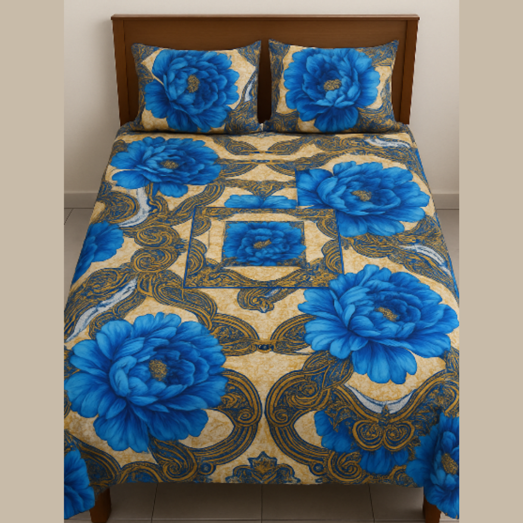 Super King Size Glace Cotton Printed Bedsheet with 2 Pillow Covers – Soft, Breathable & Stylish (Random Prints- Pack of 1)
