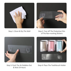 Large Capacity Wall Mounted Toothbrush Holder for Bathroom | Eco-Friendly Toothbrush & Toothpaste Organizer with 3 Square Cups