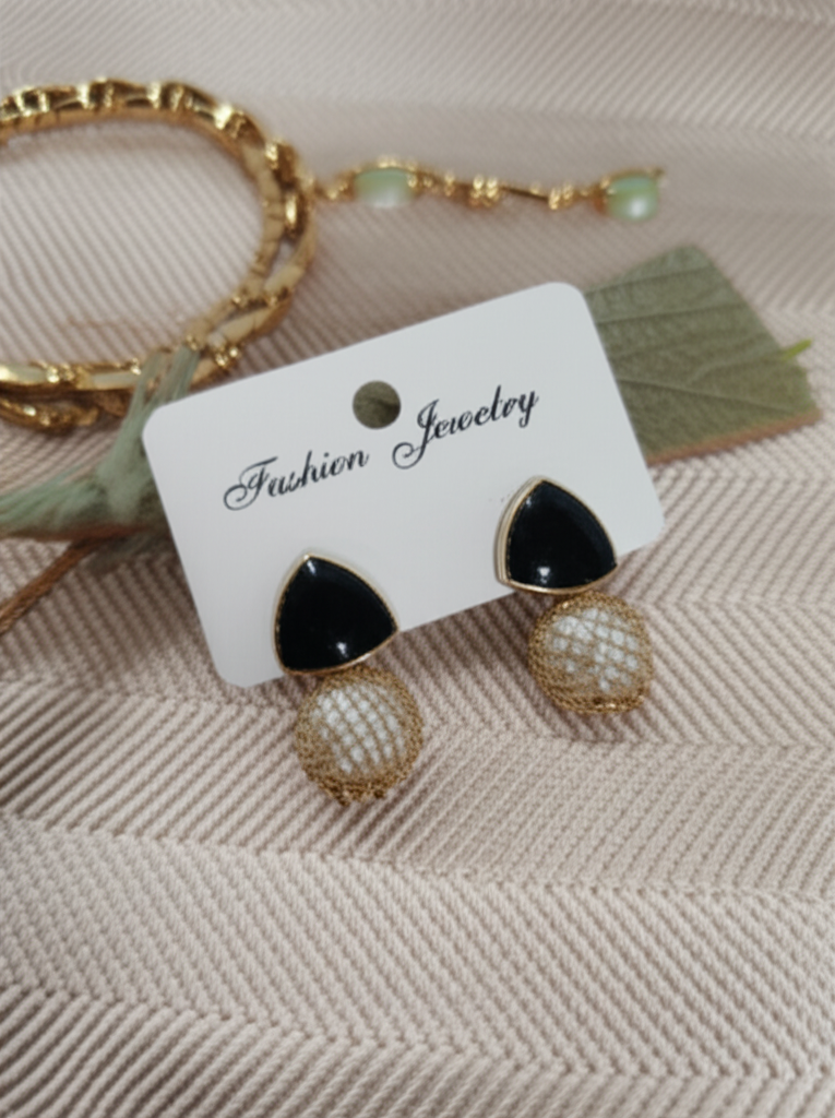 Triangle & Gold Mesh Drop Earrings - Statement Pearl Sphere Dangle Jewelry(Random color-1 Pair)