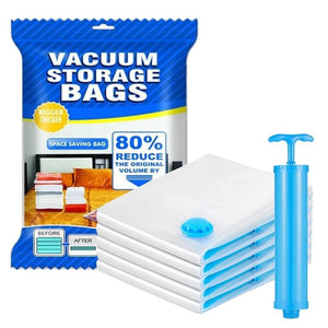 Convenient Set: The set includes five vacuum bags in various sizes, offering ample storage capacity for a variety of items. The accompanying hand pump simplifies air removal, making the process effortless.