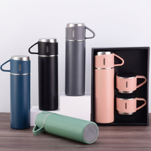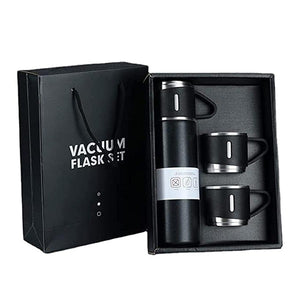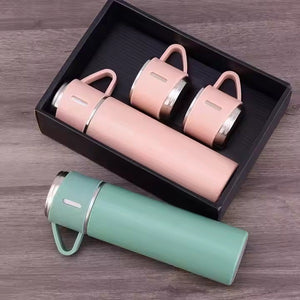 Insulated Stainless Steel Vacuum Flask Set with 3 Cups – 500ml Double Wall Hot & Cold Bottle for Tea, Coffee, Travel & Office Use (Random Colour, Pack of 1)