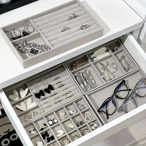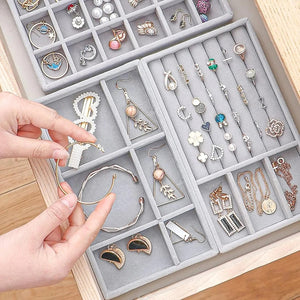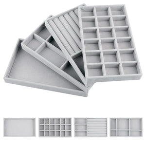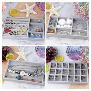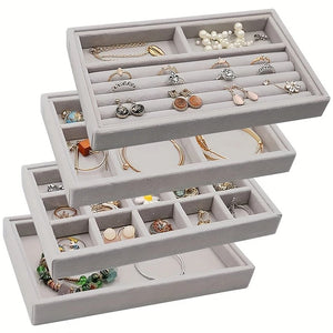 Velvet Jewelry Organizer 4 Pcs Tray – Stackable Storage Box with Compartments for Rings, Earrings, Bracelets, and Necklaces