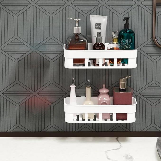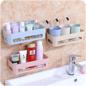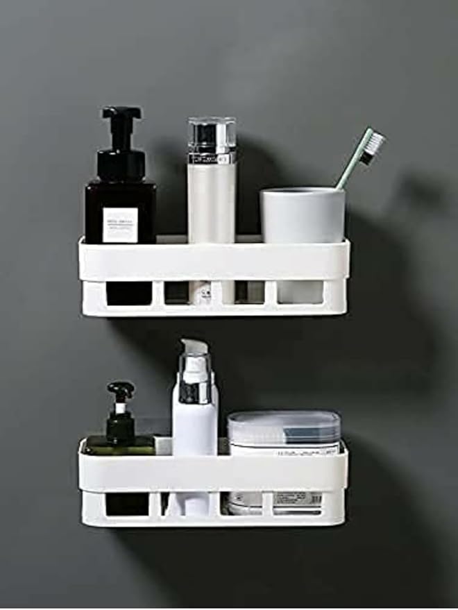wall mounted bathroom shelf | bathroom storage rack | wall shelf for toiletries | adhesive bathroom shelf | no drill shelf | space saving bathroom organizer | bathroom shelf for small spaces | plastic bathroom shelf