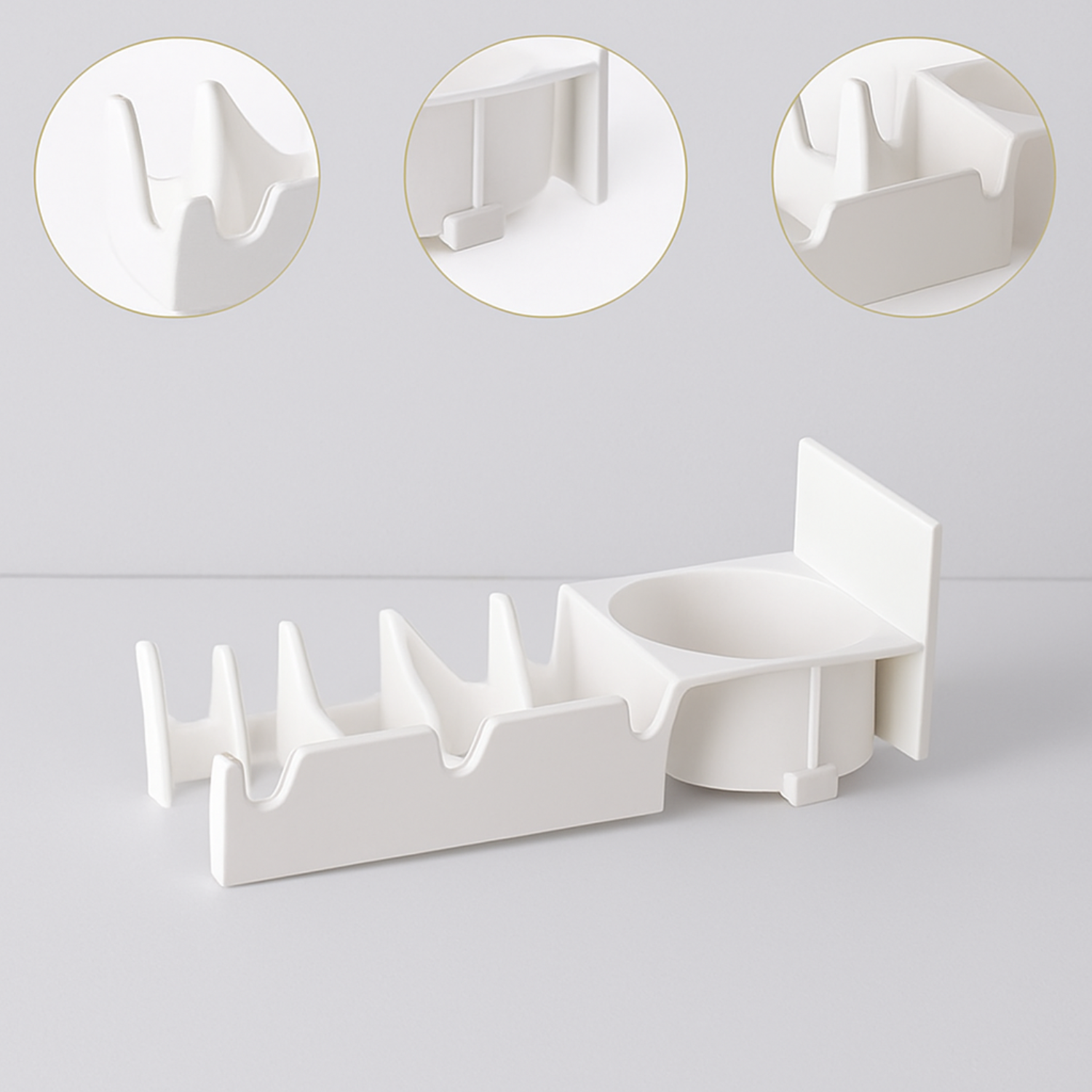 Design: Double hook design with integrated storage compartment