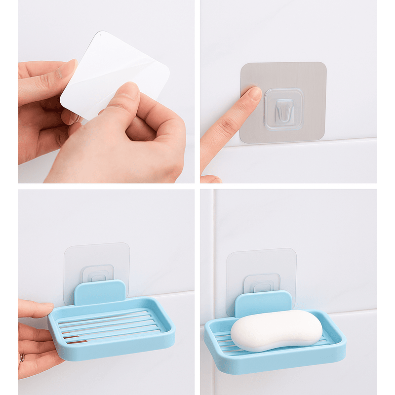 wall soap holder | self adhesive soap tray | soap dish for bathroom wall | soap stand with drain | plastic soap rack | no drilling soap holder | bathroom organizer tray | wall mounted bathroom accessories | waterproof soap dish | soap holder for kitchen sink