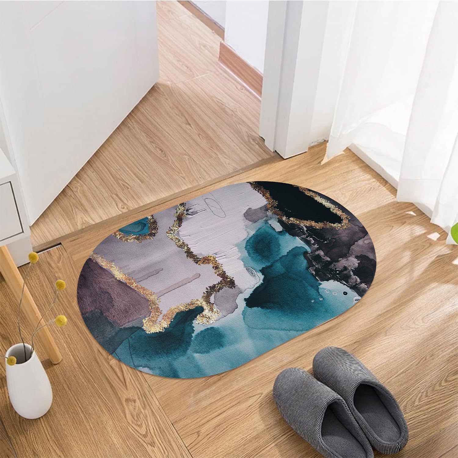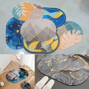 Water Absorbent Bathroom Door Mat – Non-Slip Quick-Dry Oval Rug, Heavy-Duty, Washable (Random Print) (Pack of 1)