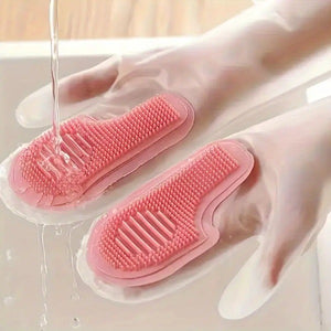 Waterproof And Non-slip Kitchen Cleaning Brush Gloves