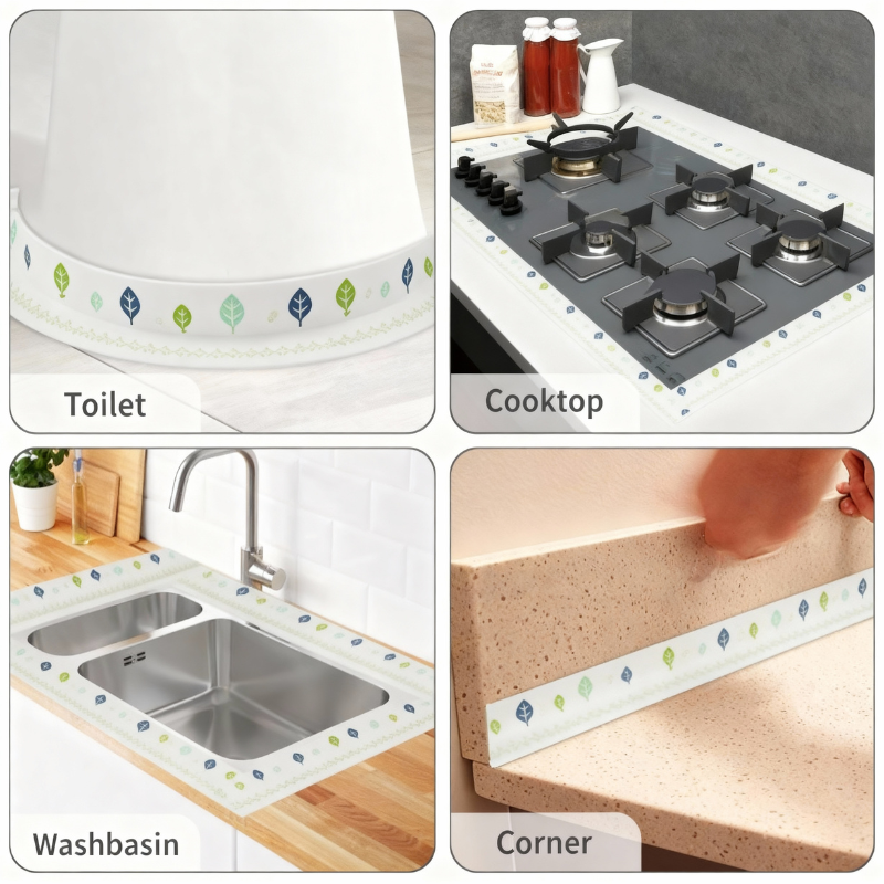 Self-Adhesive Waterproof Sealing Tape – Kitchen Sink, Bathroom Corner Gap Caulk (Oil-Proof) (Random Print)