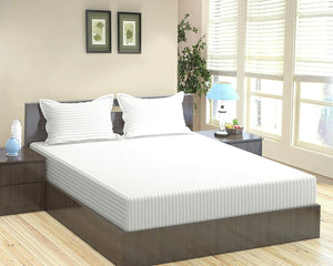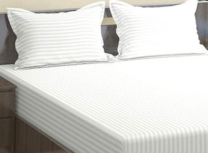 White Elegance Bedsheet Set – Premium Cotton Feel with Subtle Satin Stripes – Double Bed Size