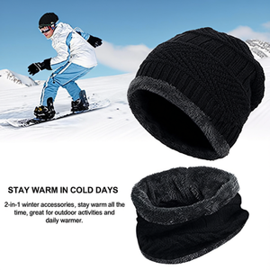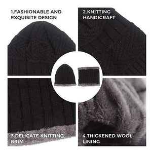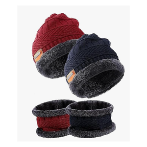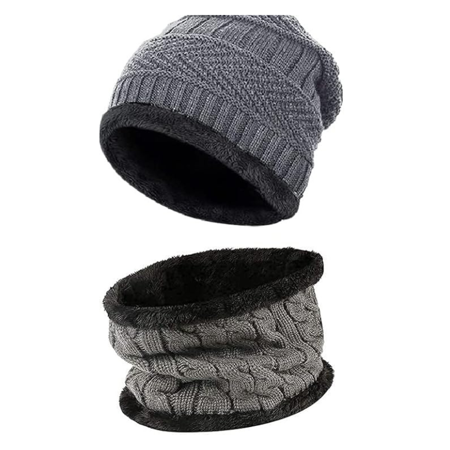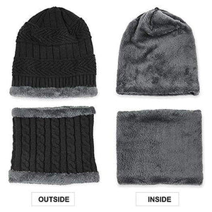 Winter Beanie Cap & Scarf Set – Warm Knit Fur-Lined Hat & Thick Scarf for Men & Women (Random color-Pack of 1)