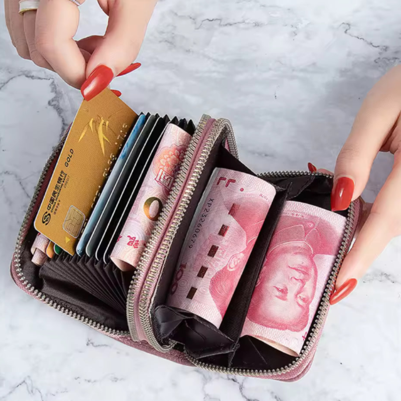 Zipper Secure: Full-zip closure keeps cash and coins safe