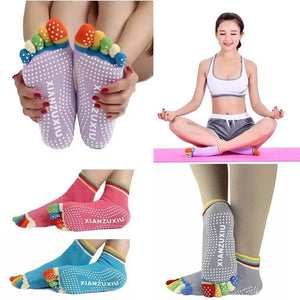 Yoga Gym Non-Slip Socks, Women Colorful Socks, Home, Kitchen Use Massage Toe Socks Full Grip Sports Exercise (1 Pair)